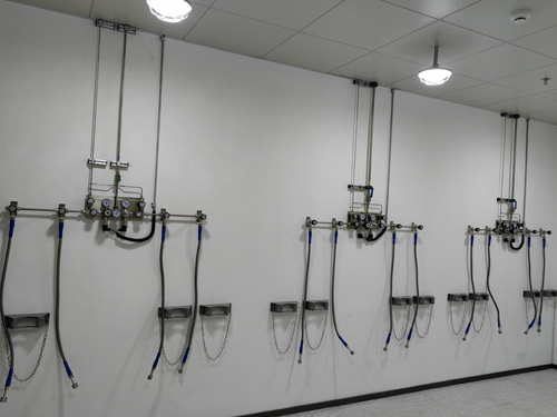 1.氣瓶間內氣壓的調節控制面板與確定實驗陽臺陽光房的氣路手持終端相互間選取SS316LBA管確定對接,管網內外面晶亮度為Ra<0.4umBA級管網。
