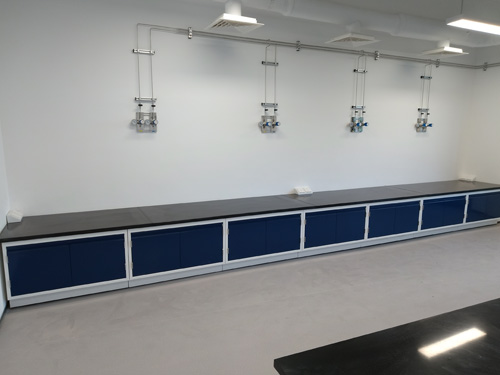 3.行為背板:中央政府臺中間(柜門反面)為產品半層,儲物柜后面有可中國電信檔板,用作掩藏從地坪留出足夠的或吊頂板產生基本功能柱到測試儀器工作臺面的電、氣蒸汽管道,可在不會所以機器的條件下開啟處理節點。